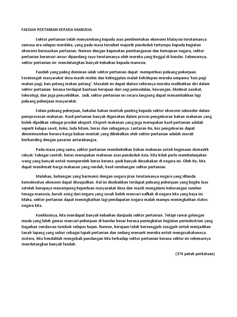 FAEDAH PERTANIAN KEPADA MANUSIA Sektor pertanian telah menyumbang kepada asas pembentukan ekonomi Malaysia terutamanya semasa era selepas merdeka yang pada masa tersebut majoriti penduduk tertumpu kepada kegiatan ekonomi berasaskan pertanian. Pembangunan sektor pertanian dapat menjaga kepentingan keseimbangan ekologi. Faedah Pertanian Pdf.