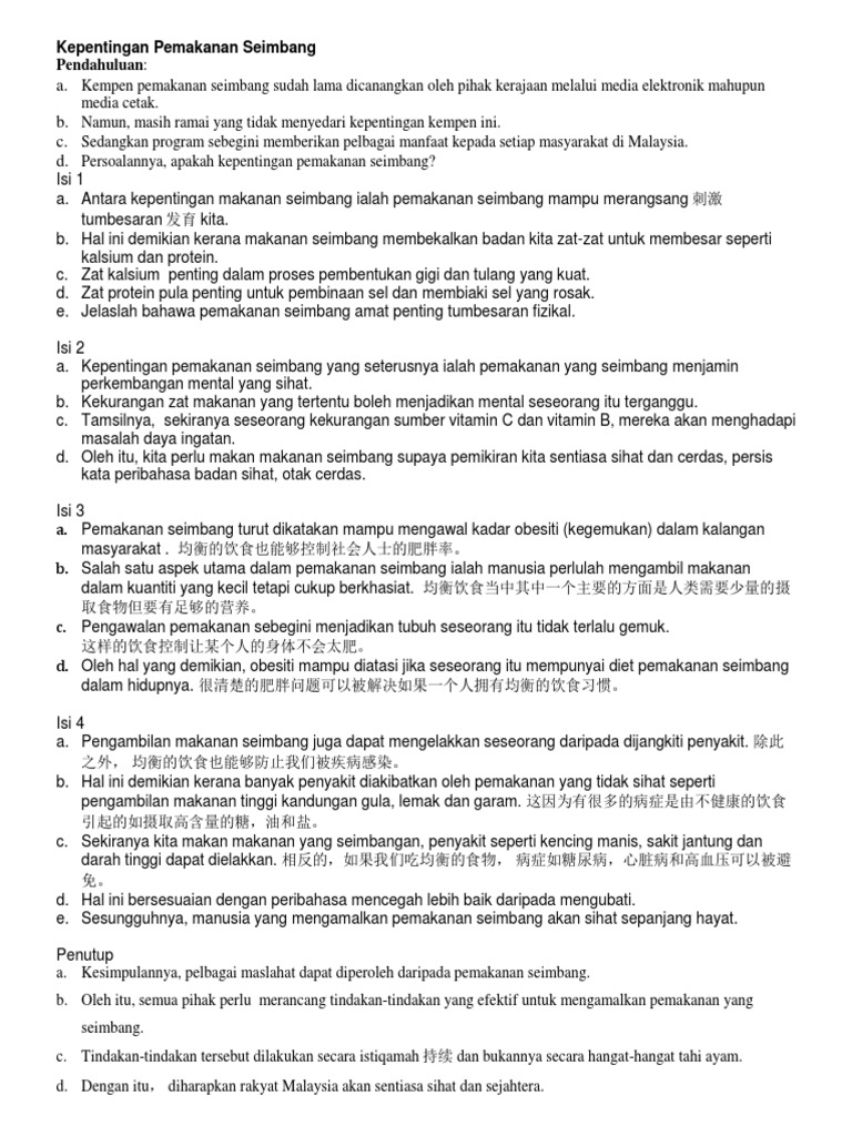 Karangan faedah makan makanan seimbang. Khamis Jun 06 2013 Esei. Antaranya ialah dapat mengelakkan diri daripada mudah jatuh sakit. Kepentingan Amalan Pemakanan Seimbang kepada Remaja Pendahuluan.