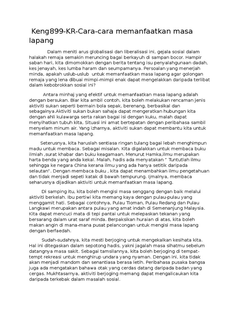 Contoh karangan pendek mengisi masa lapang. C Membuat kenyataan yang telah diperbaiki. Leisure adalah masa bagi seseorang untuk berehat dan mengambil kesempatan daripada aktiviti yang tidak semata-mata buruh ia adalah masa untuk semua itu kepada orang-orang individu dan menyeronokkan.