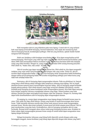 Faedah Bersukan Kepada Masyarakat Berikut adalah faedah bersukan kepada masyarakat dan negara. Seksyen 7 Penjalanan kuasa-kuasa dan pelaksanaan tugas-tugas 12 Bahagian Ill - Penghapusan Bahaya Kebakaran a. Tulis sebuah karangan mengenai faedah menabung.