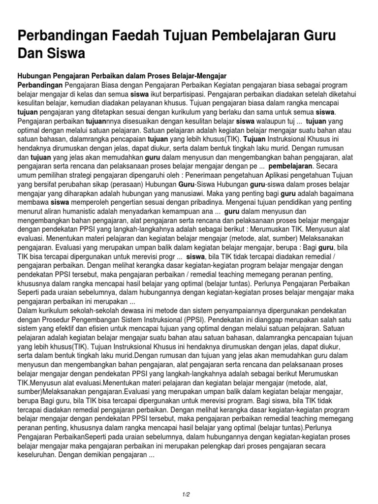 Perbandingan Faedah Tujuan Pembelajaran Guru Dan Siswa Pdf